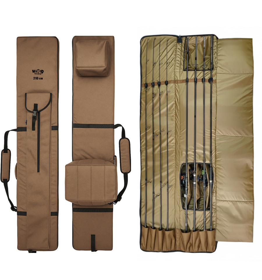 Холдал World4Carp Rod Protector 210 разработанный для взыскательных рыболовов, объединяет в себе три ключевых функции: защиту удилищ, отсеки для катушек и карман для подсака или зонта, что делает его незаменимым элементом снаряжения для карпфишинга.