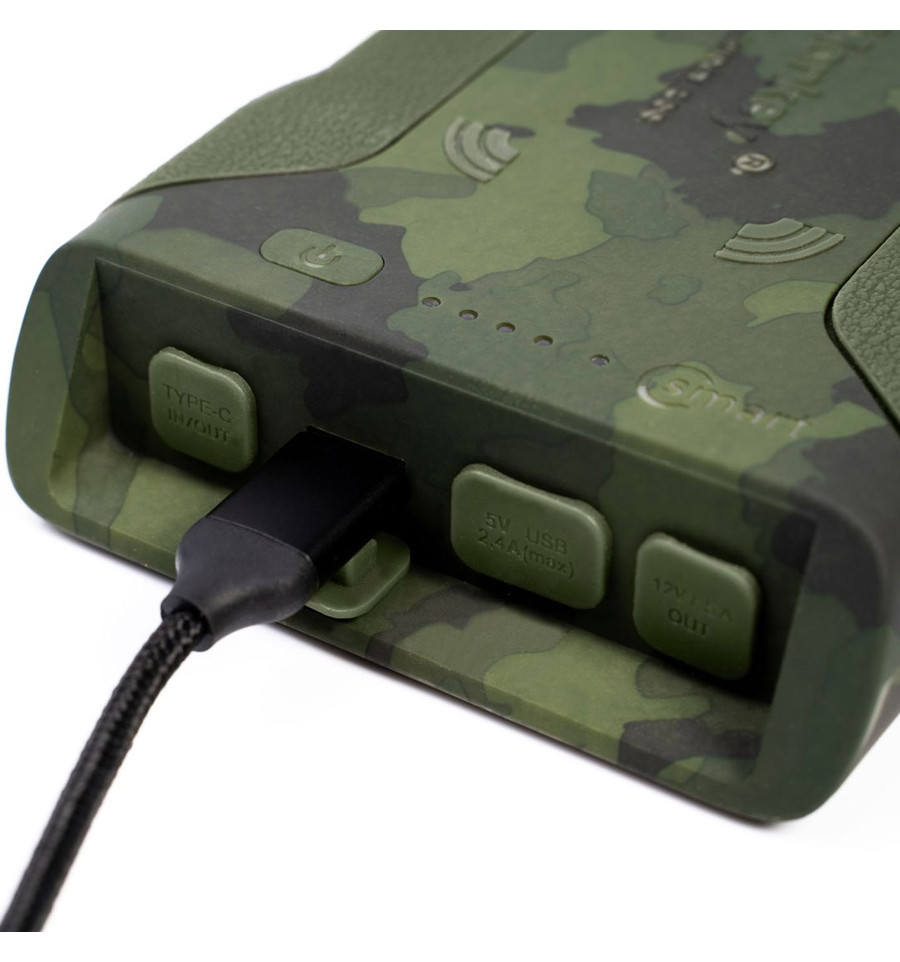 Внешний аккумулятор Ridge Monkey Vault C-Smart Wireless camo 26950 mAh обеспечивает полную энергонезависимость на берегу, позволяя заряжать смартфоны, налобные фонари, лампы для палатки и фотооборудование одновременно. Поддержка беспроводной зарядки стандарта Qi - просто положите телефон на верхнюю панель устройства, и зарядка мощностью до 10 Вт начнется автоматически