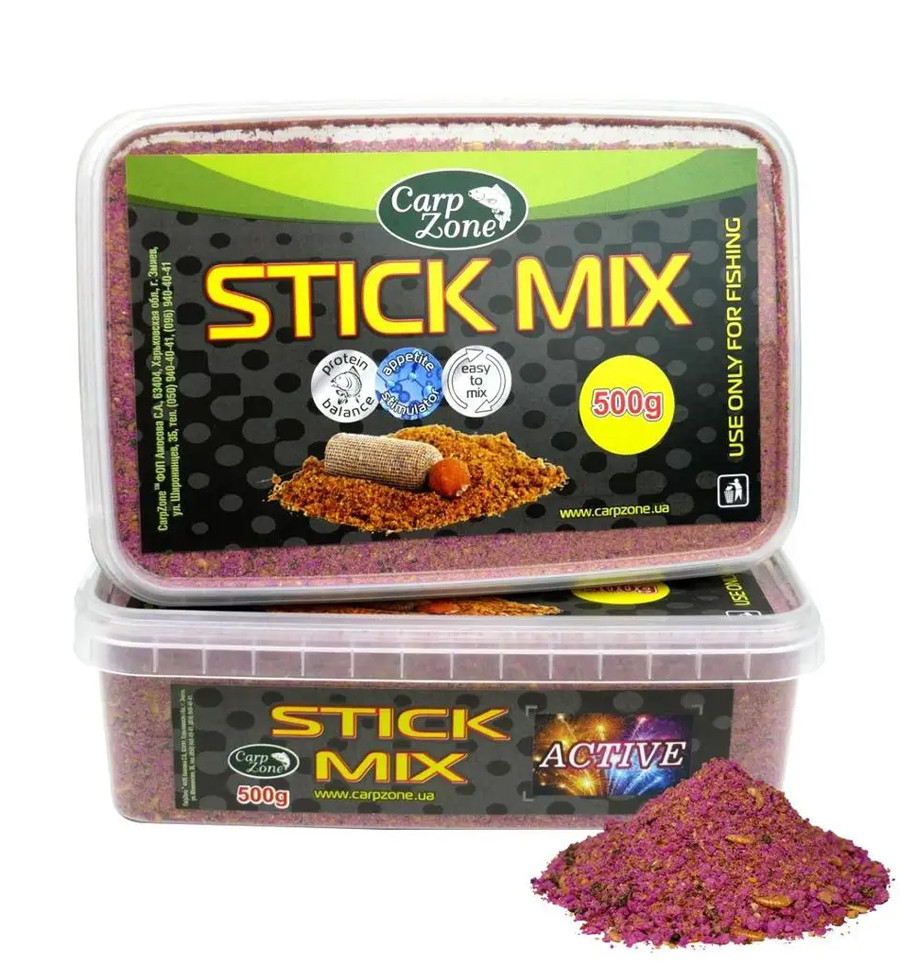 Стик микс Stick Mix Active Fluoro Purple 500g — профессиональная прикормочная смесь с флюро-эффектом фиолетового цвета. Этот микс сочетает в себе богатый аминокислотный состав и активную визуализацию, позволяя быстро привлечь осторожного карпа и выделить оснастку на фоне дна.