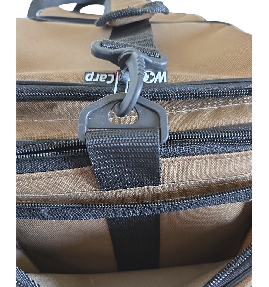o Множество карманов: На передней и боковых частях расположены карманы на молниях, а также сетчатые отделения. Они идеально подходят для хранения инструментов, мелкого тэкла, поводков, ножниц, а также полотенец и личных вещей, обеспечивая быстрый доступ к ним.