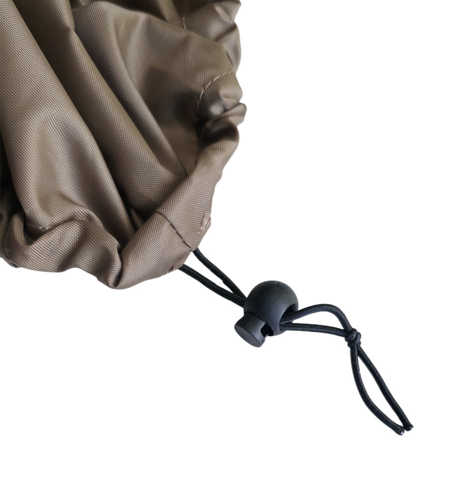 По всьому периметру вшита гумка з фіксатором, яка забезпечує щільне прилягання до контуру крісла, запобігаючи вітрині на вітрі. Додаткова стяжка на гумці з пластиковою клямкою (фастексом) надійно утримує накидку на місці навіть у штормову погоду.