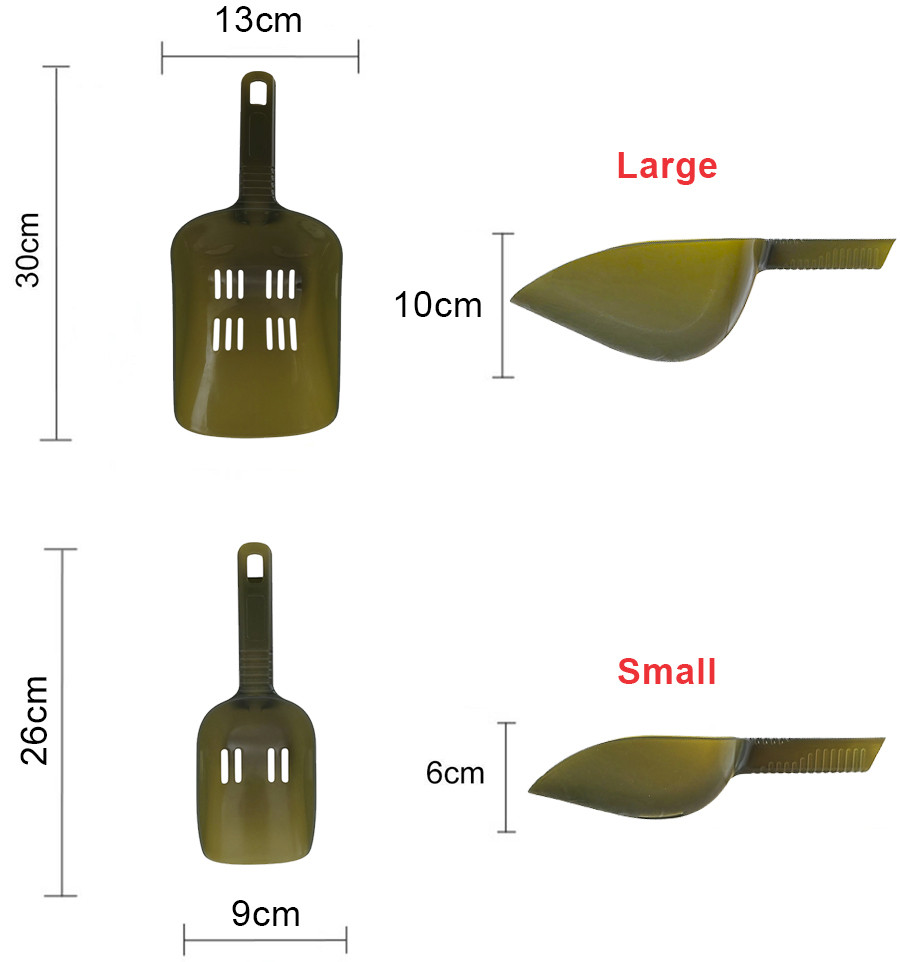 Ці ковші відрізняються міцністю, легкістю та продуманим дизайном, що робить їх незамінними помічниками на риболовлі. Використовуйте лопатку для зачерпування варених зернових із ємності. Перфорація забезпечить автоматичний злив зайвого ліквіду , готуючи підгодовування до закидання.