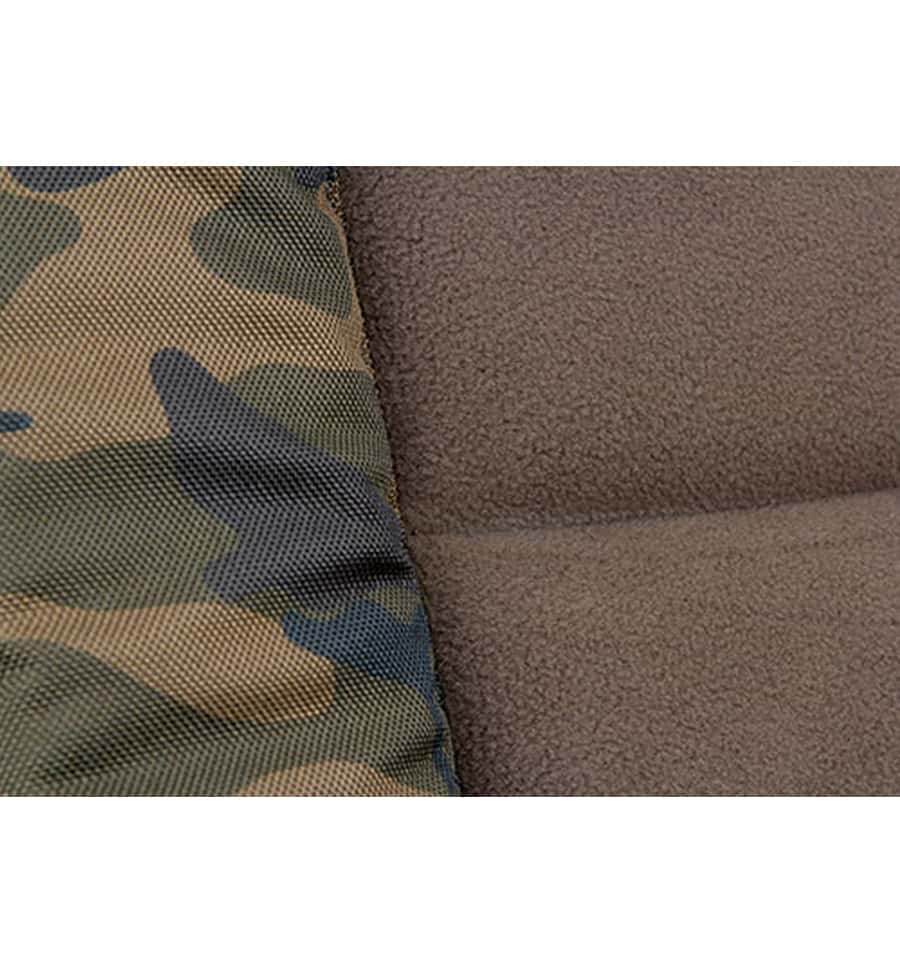 Крісло має в основі один сталевий каркас, який витримує величезні навантаження. Також містить високощільний пінковий прошарок з мікрофлісом, повністю регульовані ніжки та спинку. Крісло обшите запатентованим Fox камуфляжним матеріалом Camo