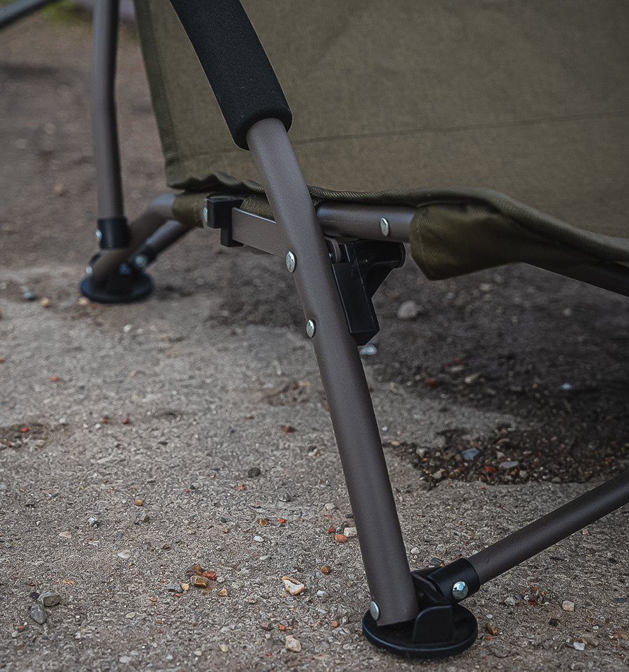 Низкая посадка. Высота ножек составляет 20 см. Это позволяет удобно расположиться внутри небольших укрытий (шелтеров) или сидеть максимально низко над водой, чтобы не пугать осторожную рыбу силуэтом на фоне неба.
