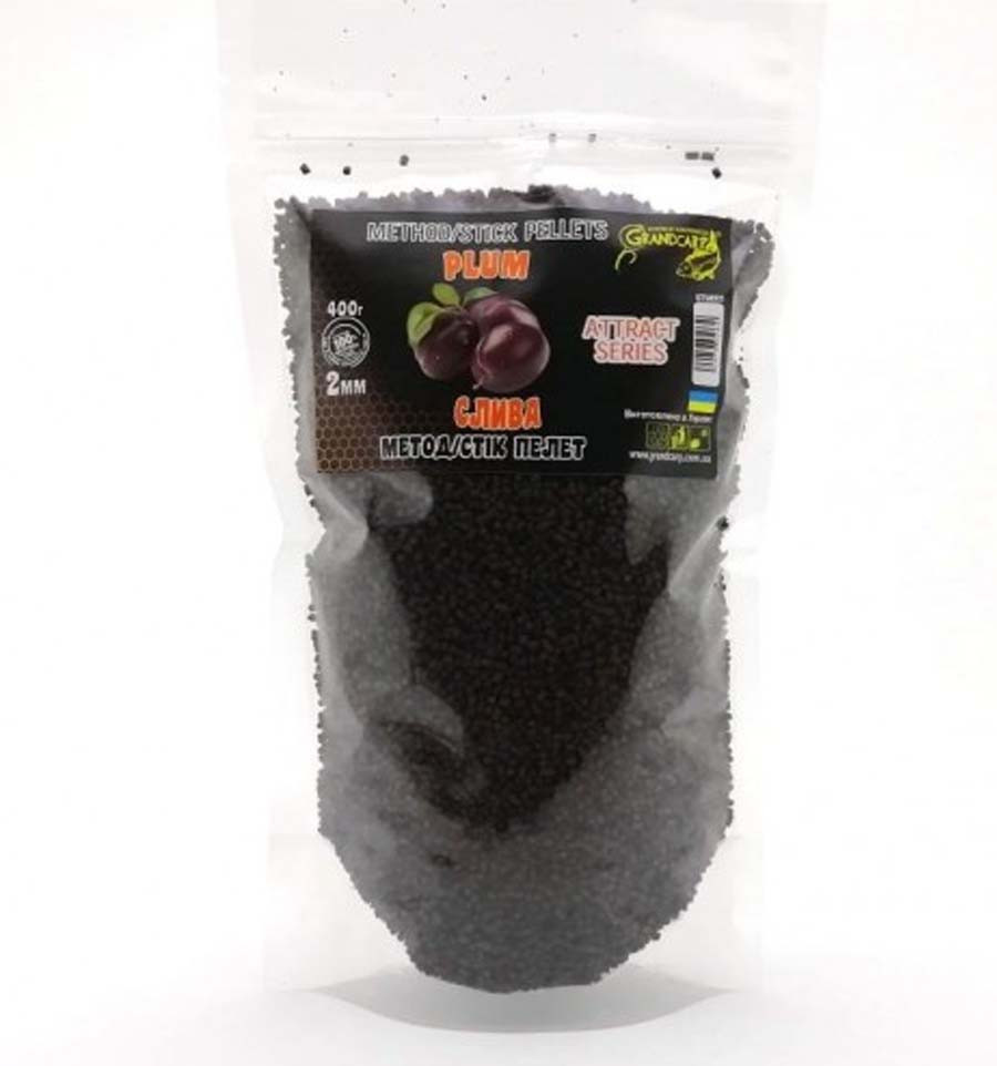 Стік пелет Grandcarp СЛИВА серії ATTRACT Ø2 мм, 400 г Цей пелет діаметром 2 мм підходить як для наповнення флет-годівниць, так і для використання в ПВА стиках (і як самостійне підгодовування, і як добавка до стик-міксів)