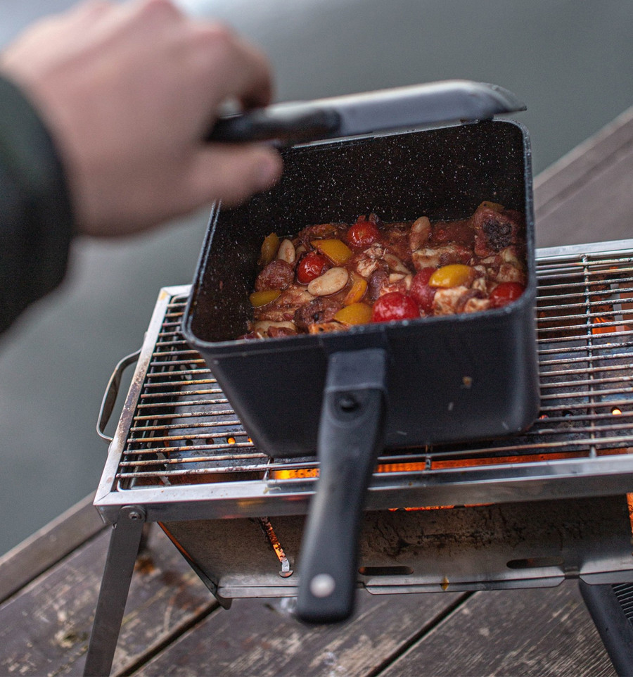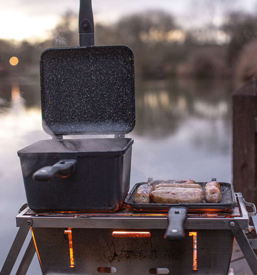 Система для приготування їжі за умов тривалих рибальських сесій. Комплект поєднує в собі глибоку каструлю та сковороду-гриль, які можуть використовуватись як разом, так і окремо.