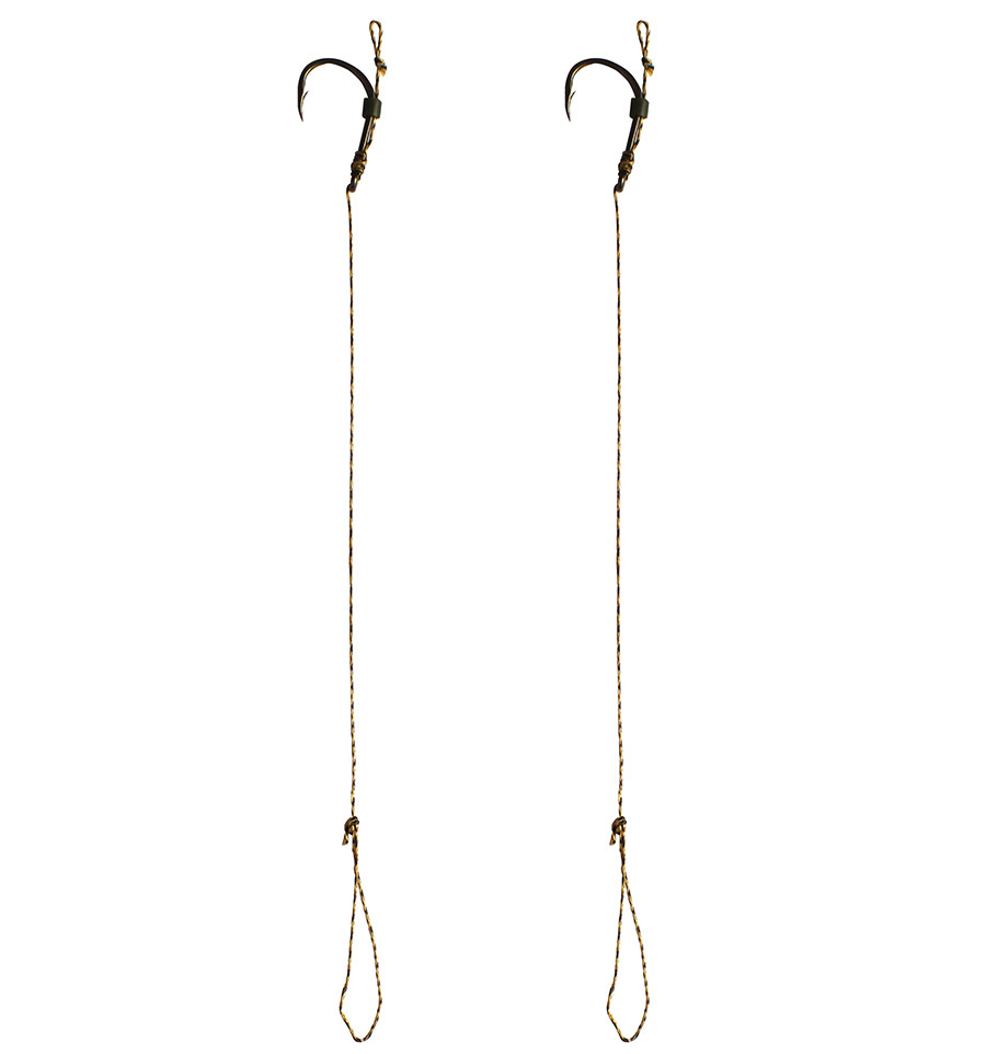 Основа повідця - м'який тональний матеріал без обплетення з розривним навантаженням 15 lb. Завдяки камуфляжному забарвленню та еластичності, він ідеально лягає на дно, повторюючи рельєф, і не насторожує обережну рибу при всмоктуванні насадки.