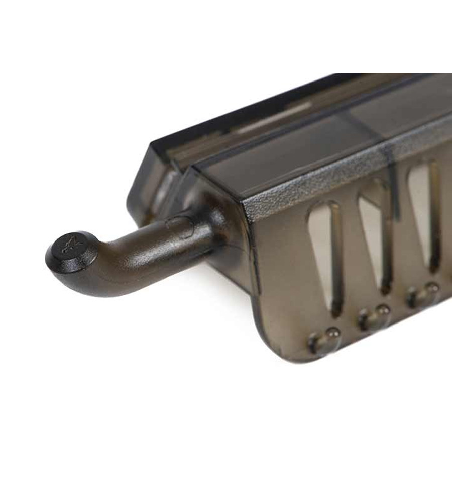 Універсальність кріплення повідців. Конструкція продумана до дрібниць: оснастки можна фіксувати двома способами. Або надягати петельку повідця на спеціальні штирі, або підвішувати їх за вертлюг або гачок через профільовані металеві пази. Це підходить для повідців будь-якої довжини та типу матеріалу (флюорокарбон, плетений шнур).